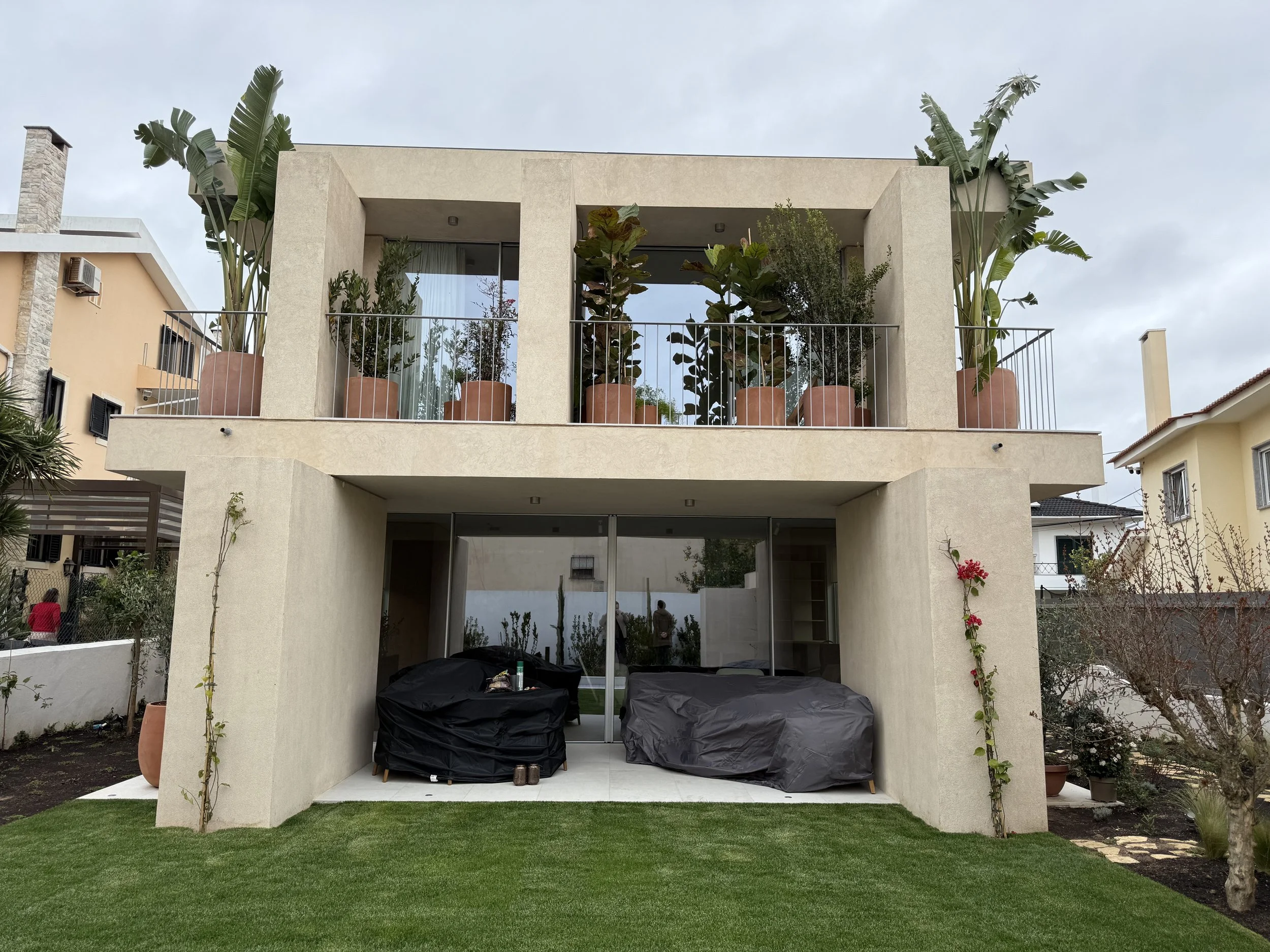 O projecto desenha-se num bairro consolidado em Cascais, no único lote vazio que permanecia na rua. A forma da casa nasce da negação dos vizinhos nas laterais, muito próximos, abrindo-se nos topos ao jardim, mais recatado.